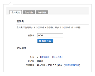 可以设置自己的空间属性、选择主页风格、隐私设置。